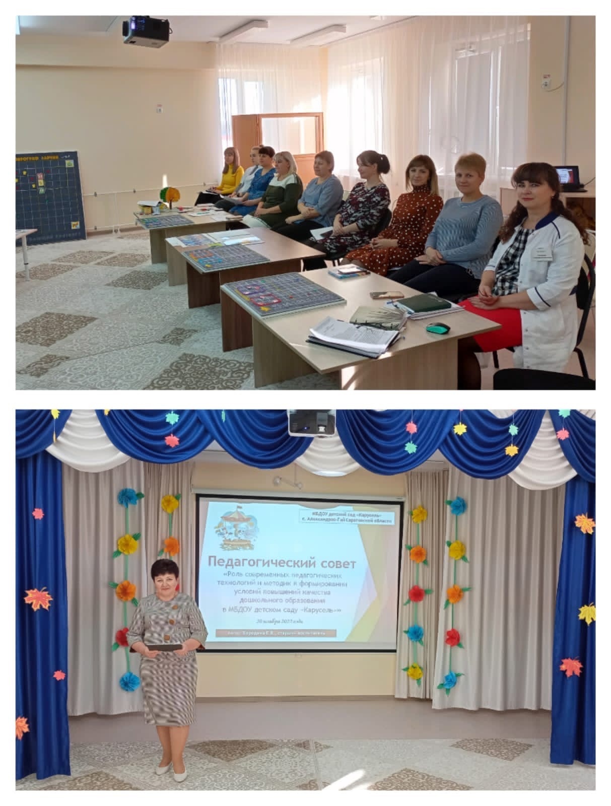 Тематический педагогический совет «Роль современных педагогических технологий и методик в формировании условий повышения качества дошкольного образования в МБДОУ детском саду "Карусель"» состоялся 30 ноября 2022 года.