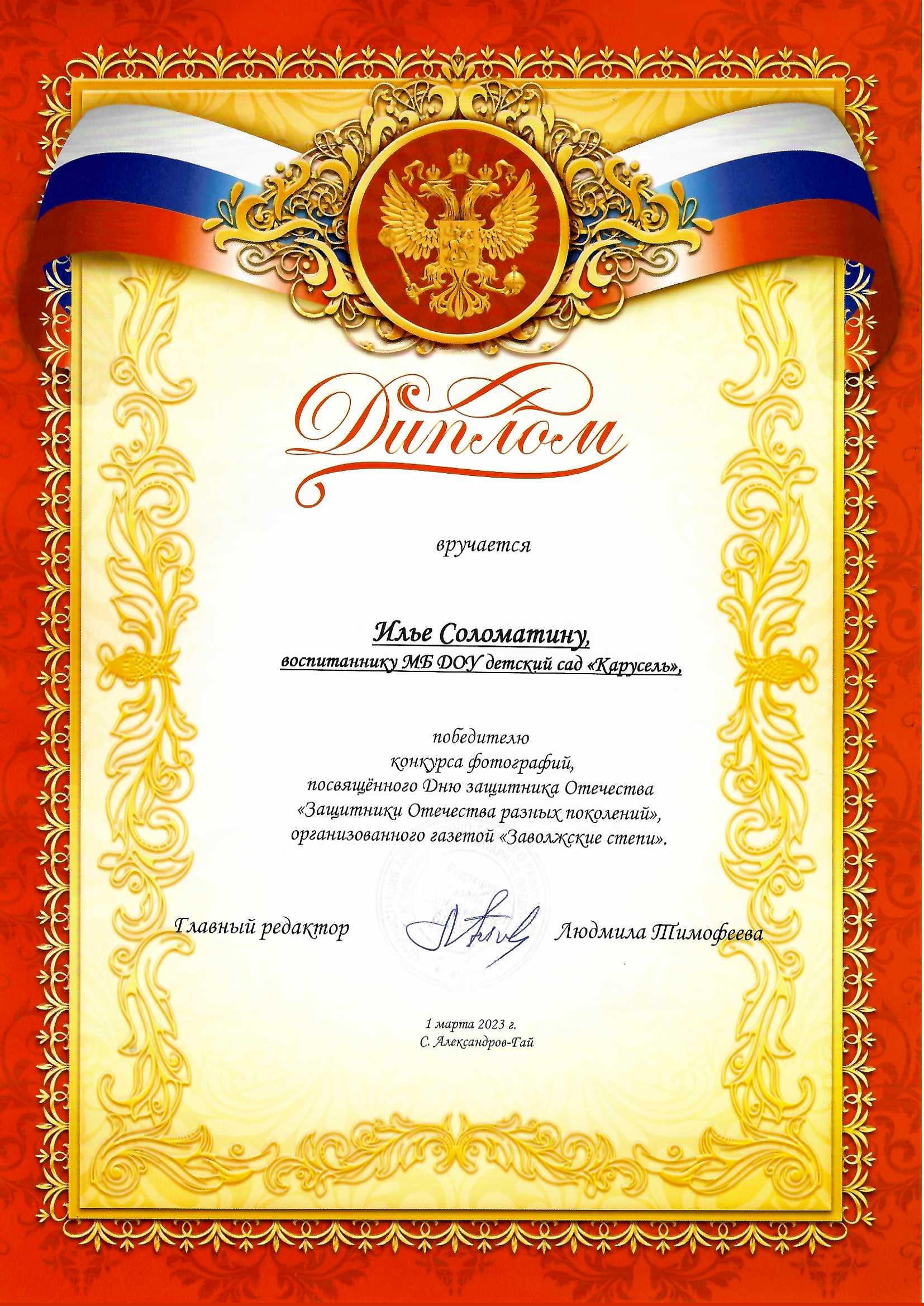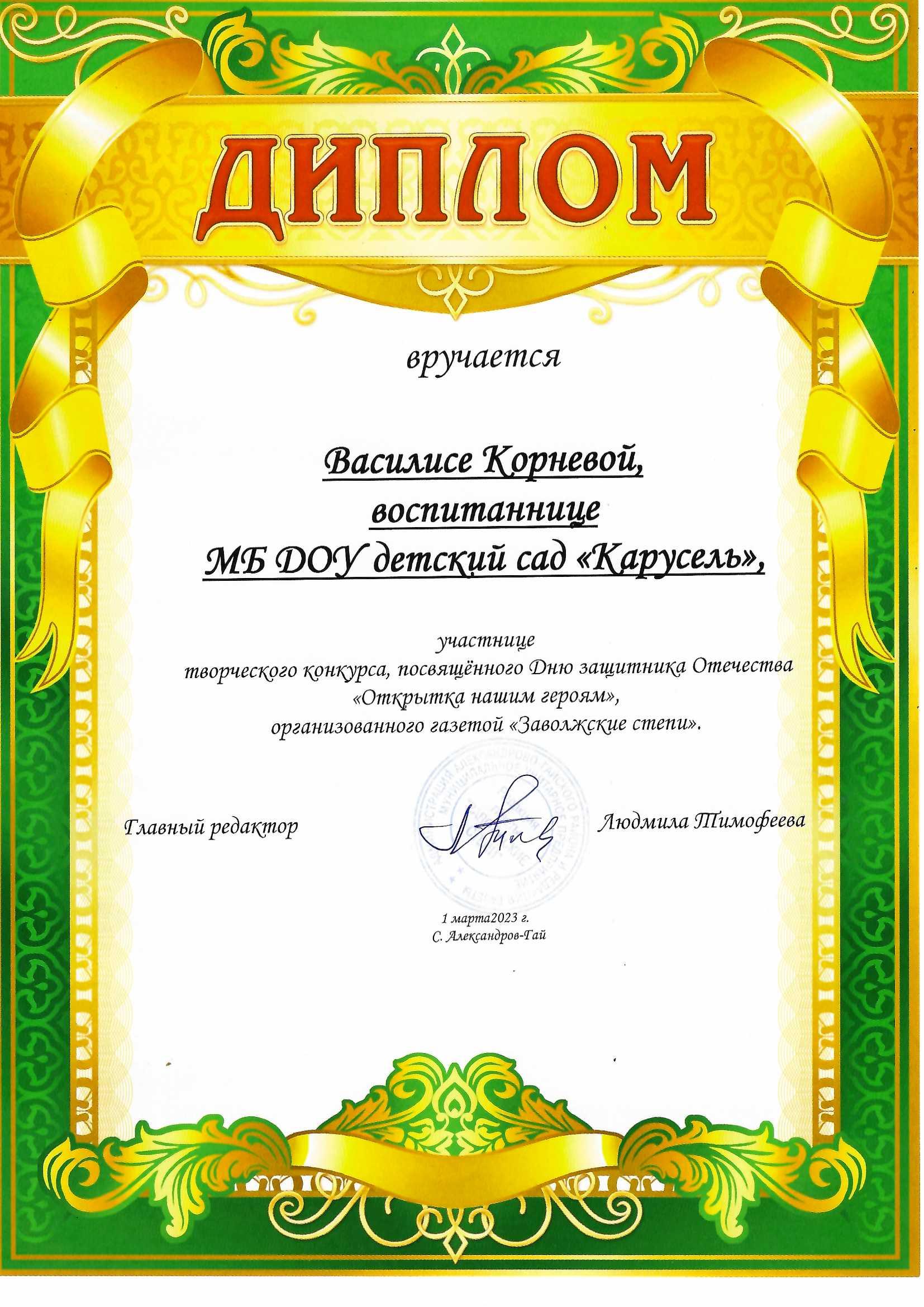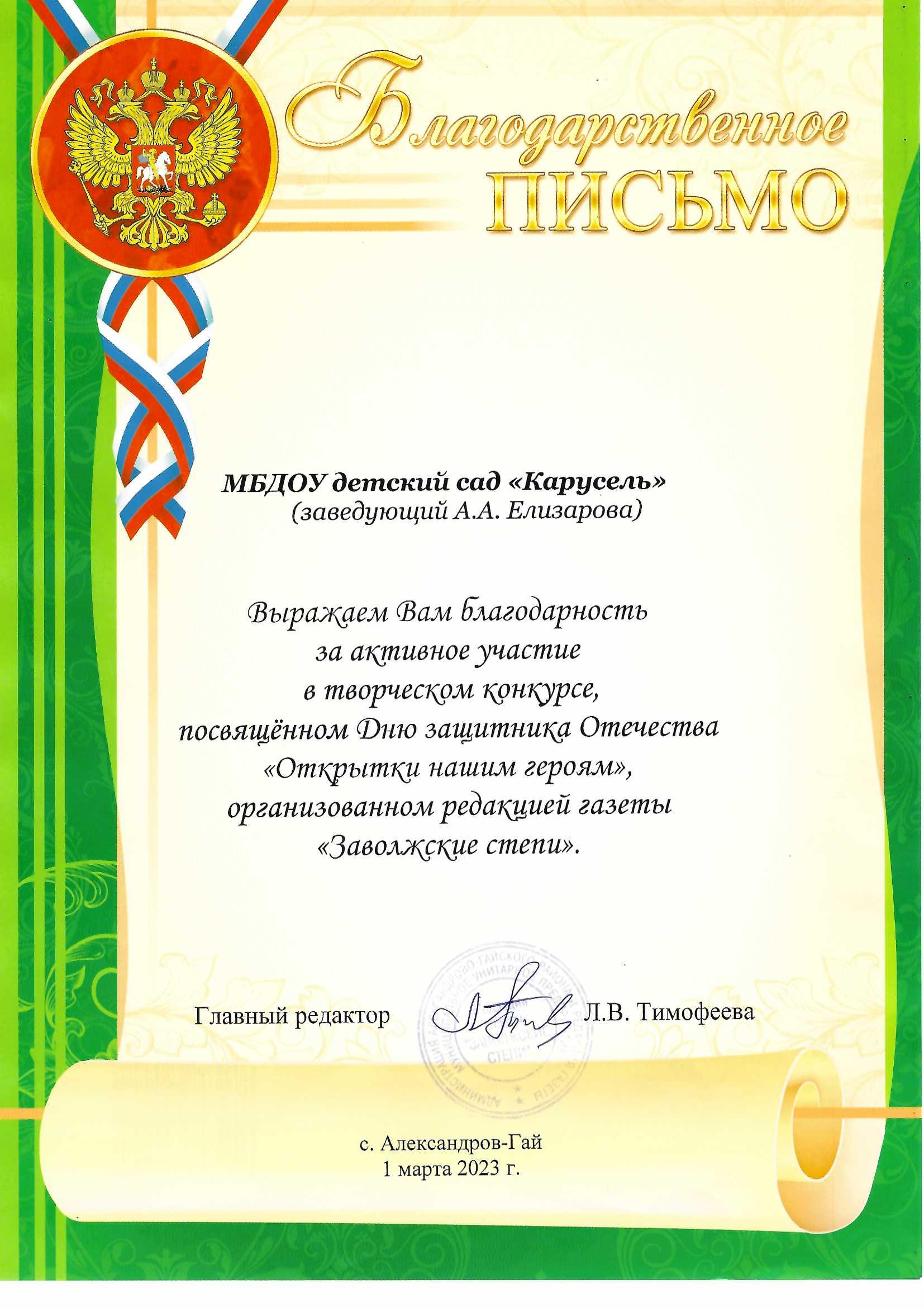Воспитанники нашего детского сада приняли участие в творческом конкурсе "Открытки нашим героям". Победителем конкурса стал Саломатин Илья , дипломами участников награждены Ильиных Алексей, Якшаинова Аделина, Корнева Василиса, Урюпина Марьяна, Куанов Ильяс, Амангалиев Ансар.