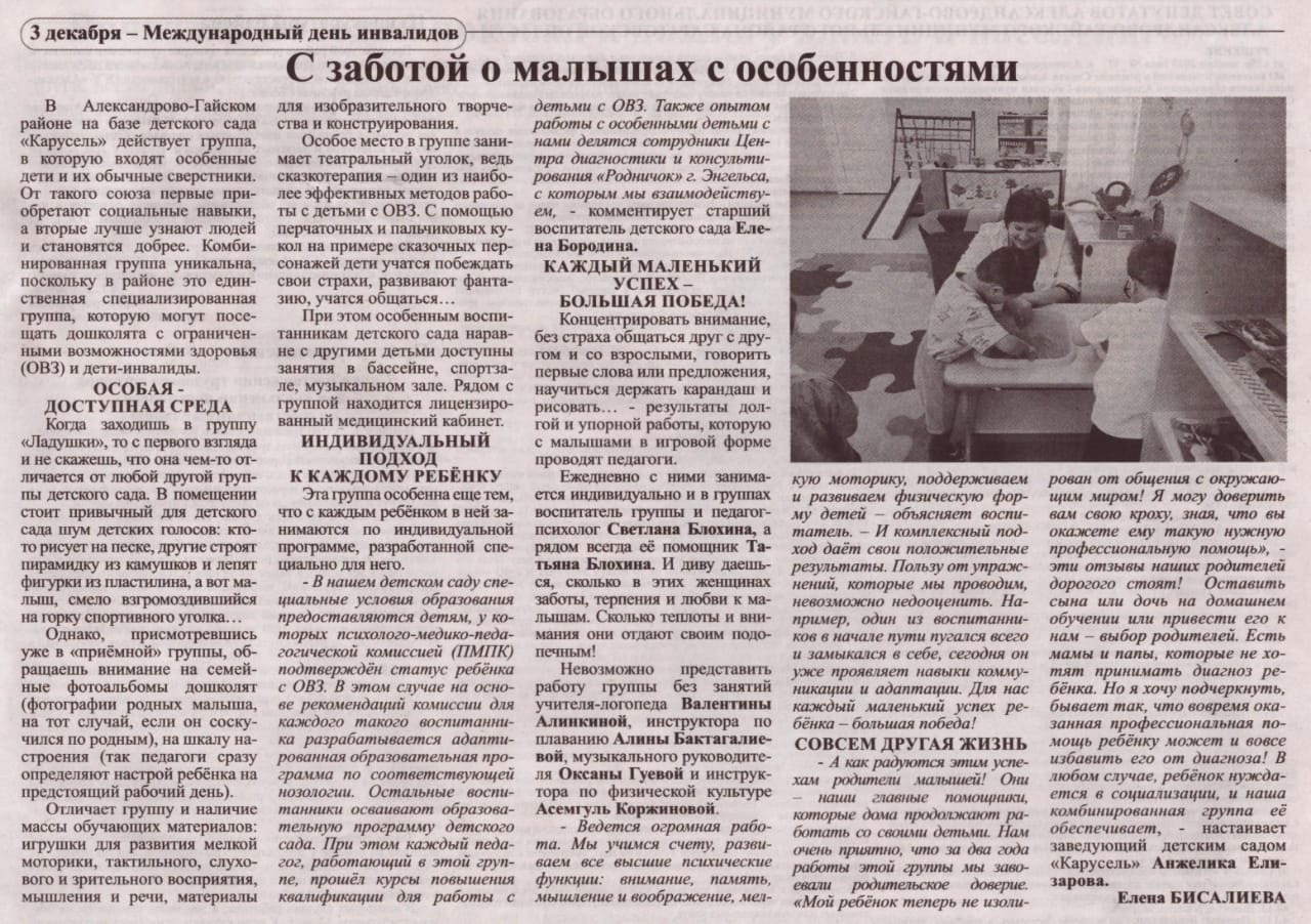 О работе комбинированной группы детского сада читайте в статье газеты "Заволжские степи" от 30.11.2023 года.
